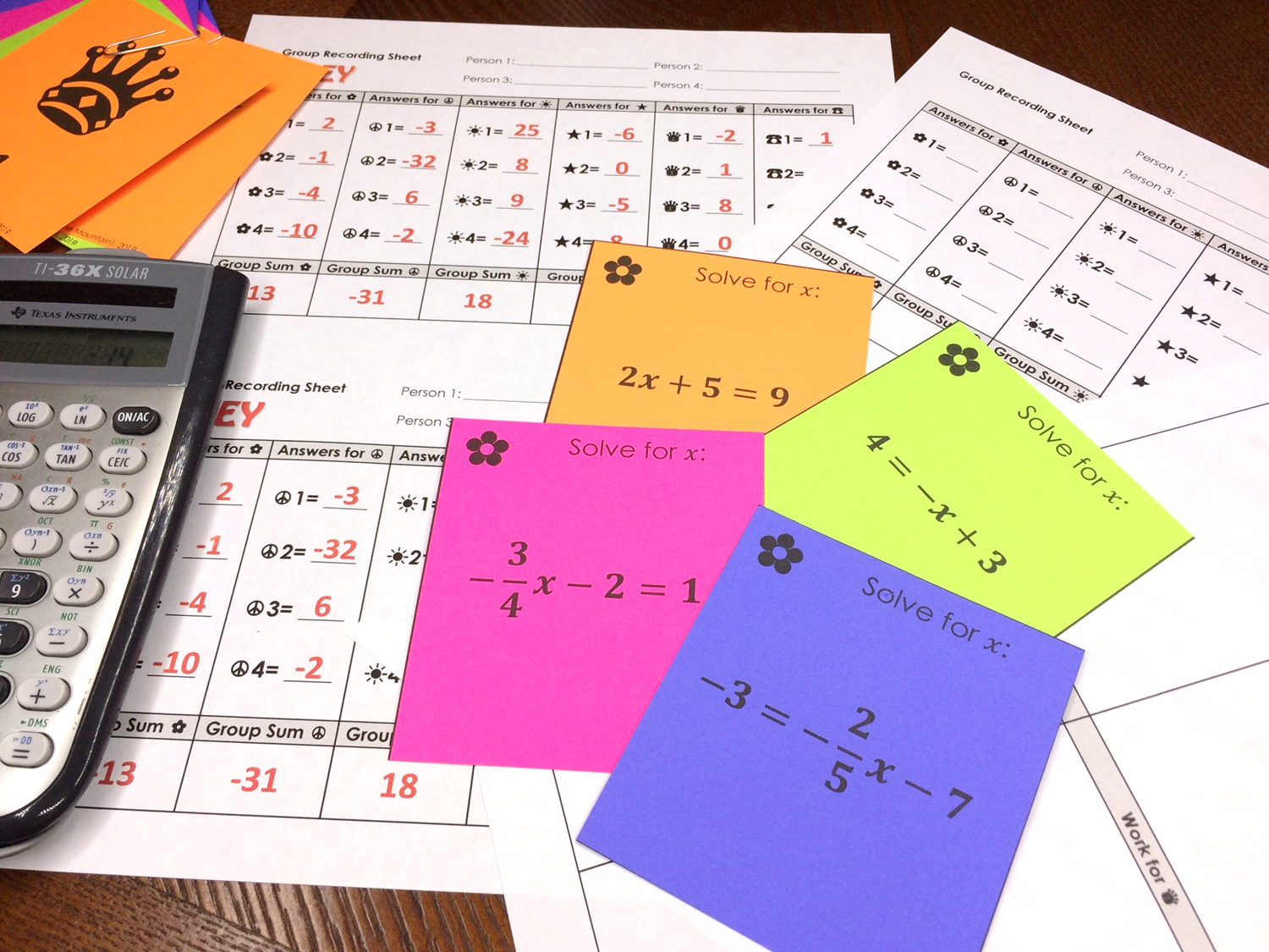 Once students are in groups of 4, each student gets a work recording sheet, and each group gets an answer recording sheet. Finally, we’re ready to go. Also, teachers, this part is really important, this is an activity that you absolutely MUST have an answer key pre-made. Students will be checking in with you rapid-fire, so you need to be ready. I always include an answer key with my activities, so you don’t have to do any extra prep!