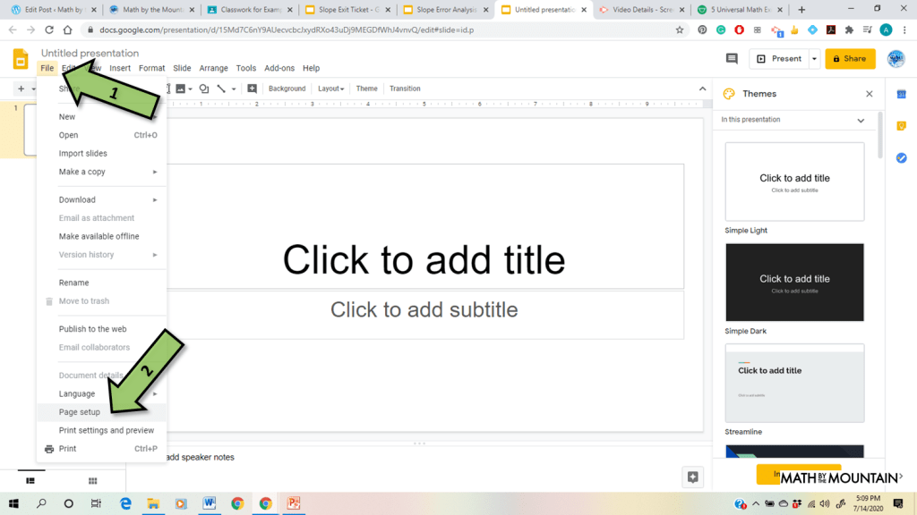 Step 2: Open a new Google Slides presentation and change the dimensions.