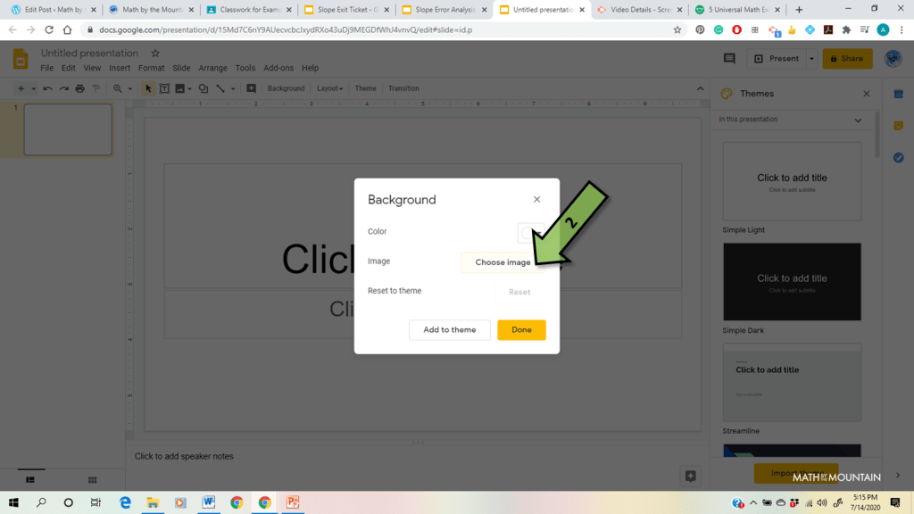 Click Background, Choose Image, and then select the image file from wherever you saved it on your computer in Step 1. Finally, click Done.