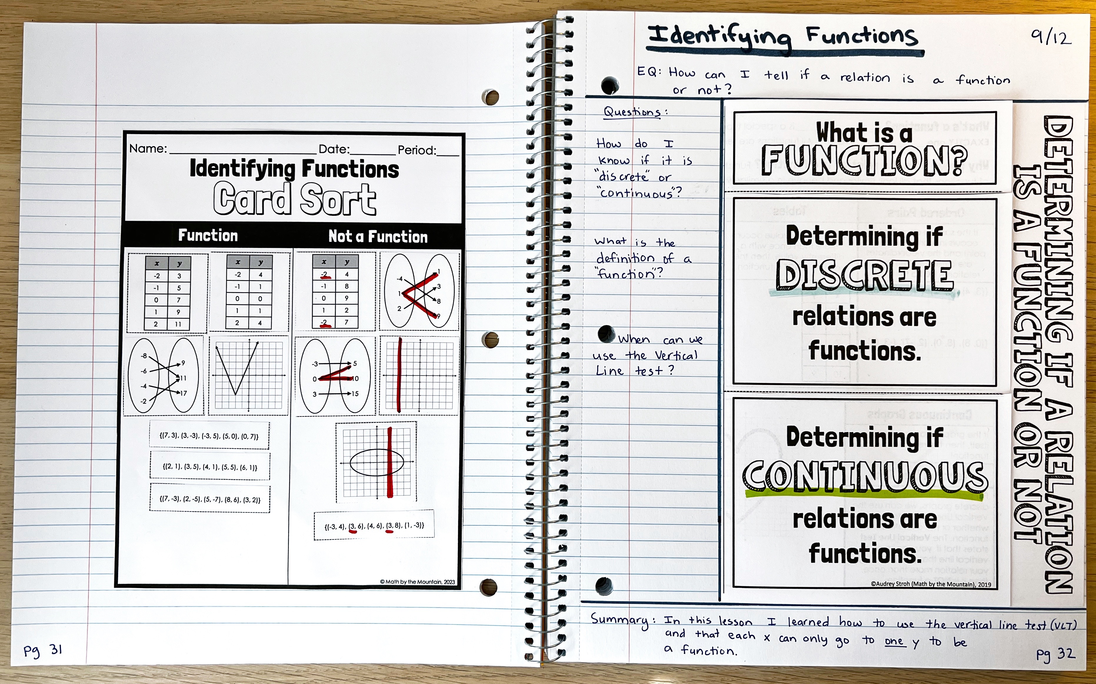 My favorite 2-page spread combo is to have a new topic of notes on the left and a matching recap warm-up that we complete the following day on the right. Here’s an example of what that looks like: